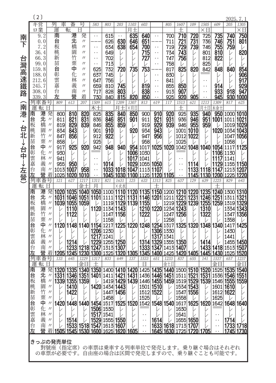 今回の時刻表は臺鐵2025.6.26/高鐵2025.7.1改正ダイヤ掲載!