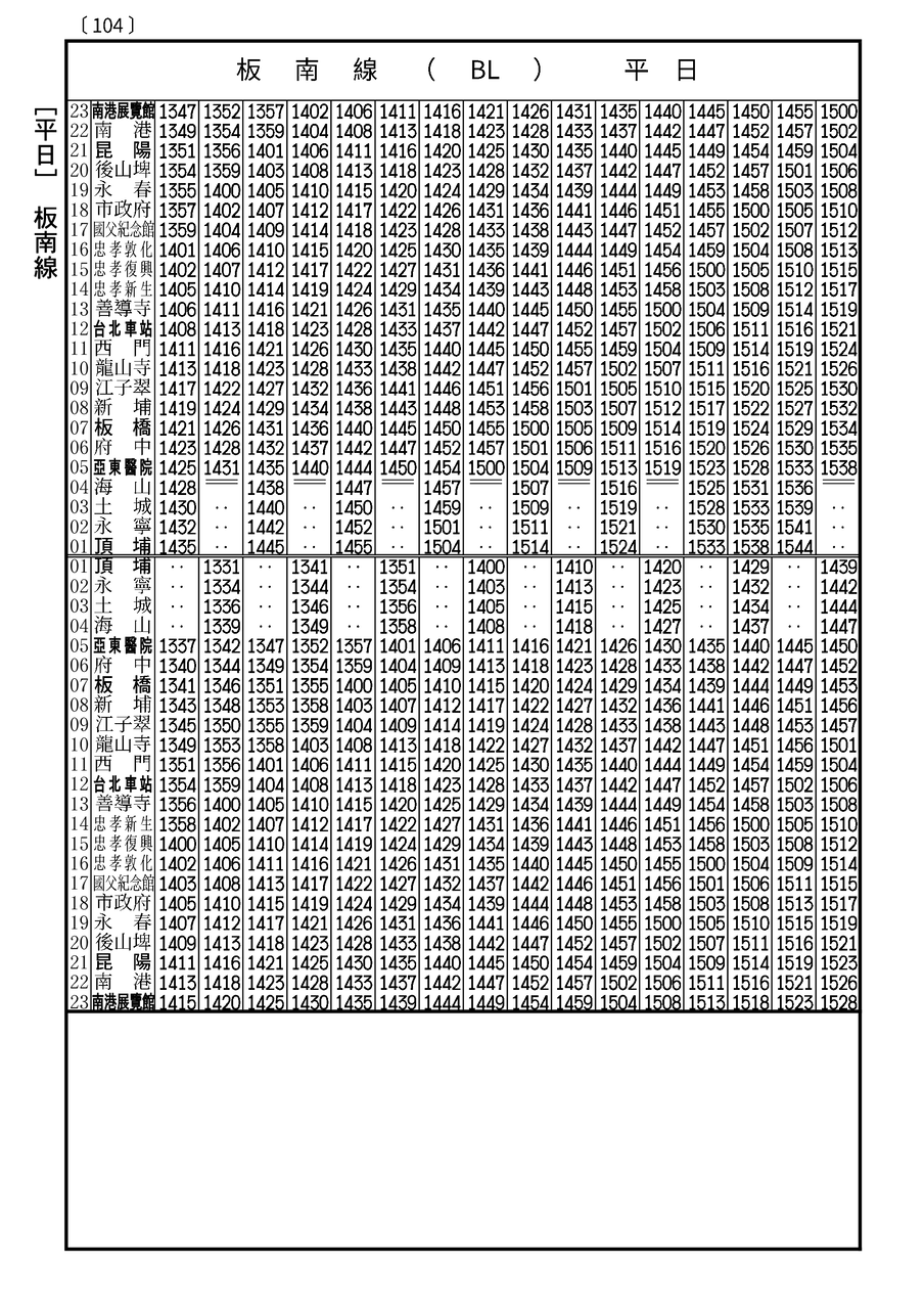待望の台北捷運全電車時刻表登場!