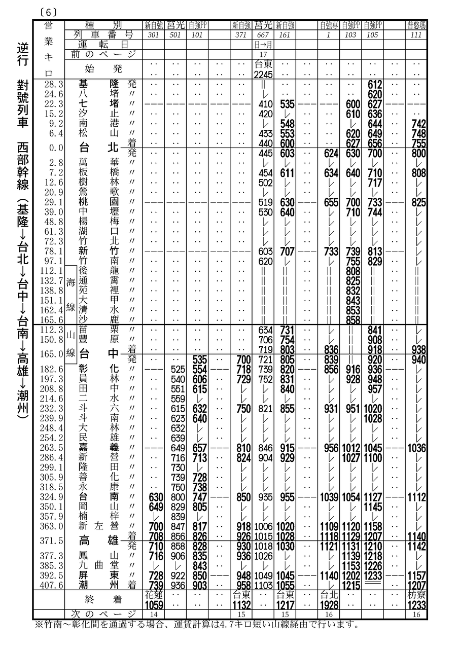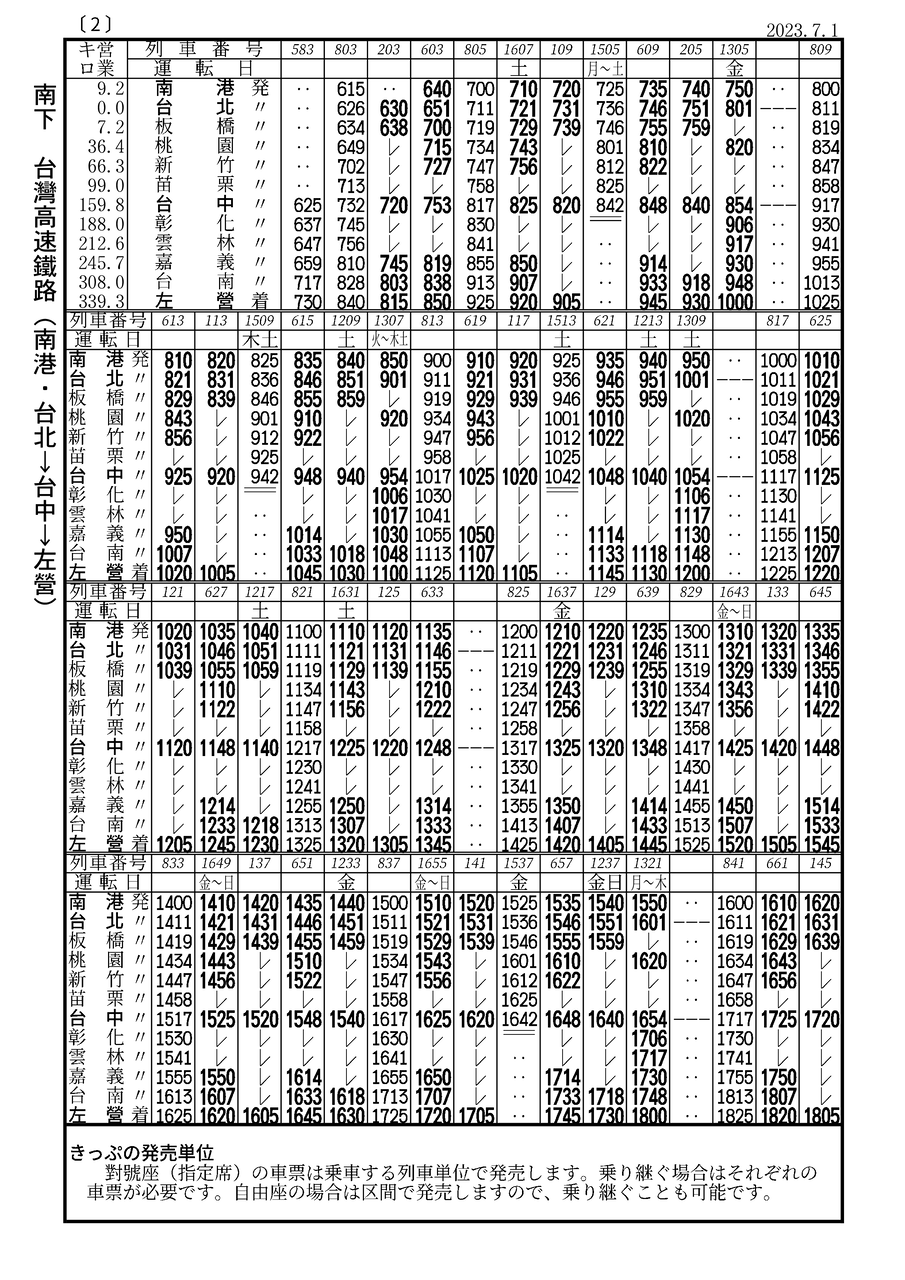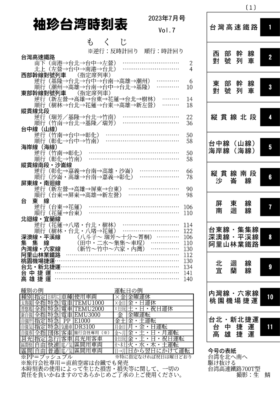 今回の時刻表は台鐵2023.6.28改正、高鐵2023.7.1修正ダイヤを掲載。